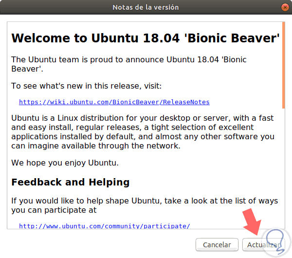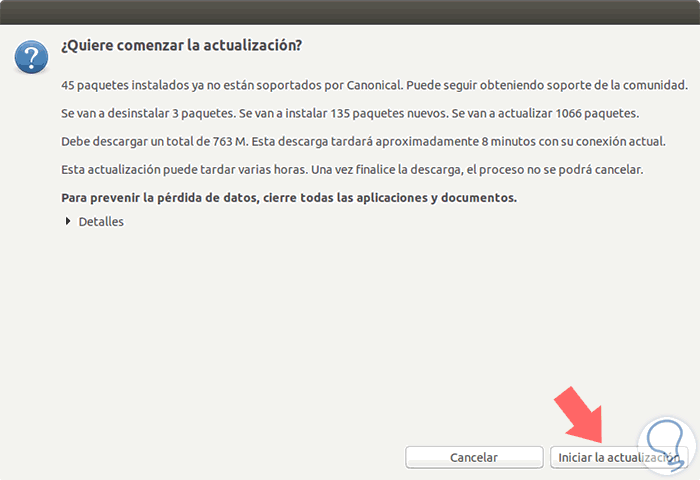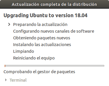 Allí pulsamos en el botón Iniciar la actualización para comenzar el proceso de actualizar nuestro equipo a Ubuntu 18.04.
