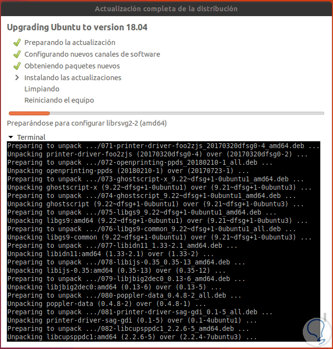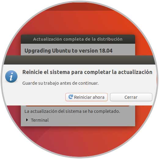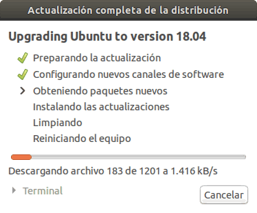 Una vez este proceso el equipo será reiniciado para completar el proceso de actualización a Ubuntu 18.04: