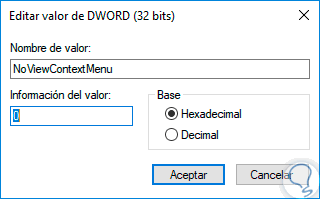Este nuevo valor será llamado “NoViewContextMenu”: