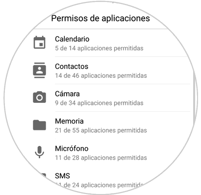 Aquí aparecerá un listado de los elementos del teléfono a los que pueden acceder las aplicaciones que descargas. Haz click sobre el que quieras gestionar.