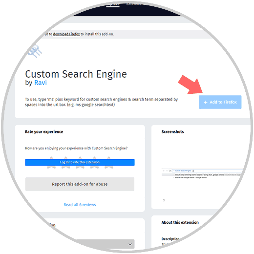 Descarga el complemento Custom Search Engine para Firefox en el siguiente enlace: