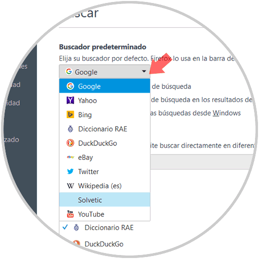4. Cómo cambiar el motor de búsqueda predeterminado en Firefox