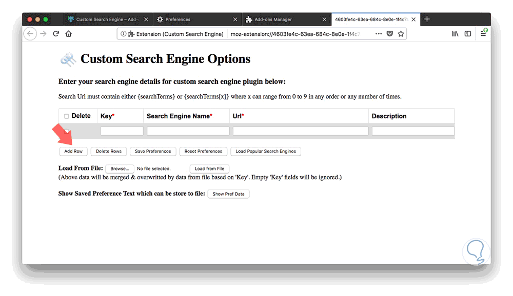 Aparecerás en una ventana donde tendrás que pulsar el botón "Add row" hacer lo siguiente: