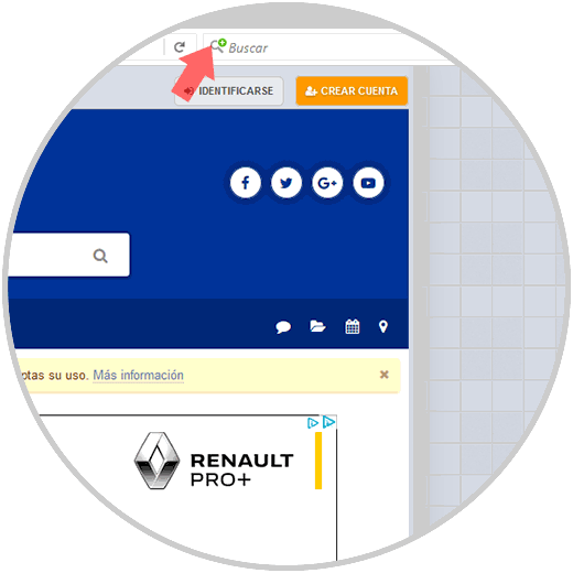 Cuando puedes agregar un motor de búsqueda, en la lupa de la barra se activará un signo más en color verde. Pulsa sobre él.