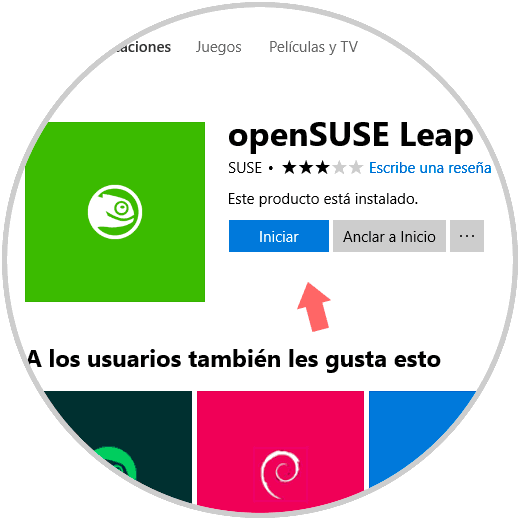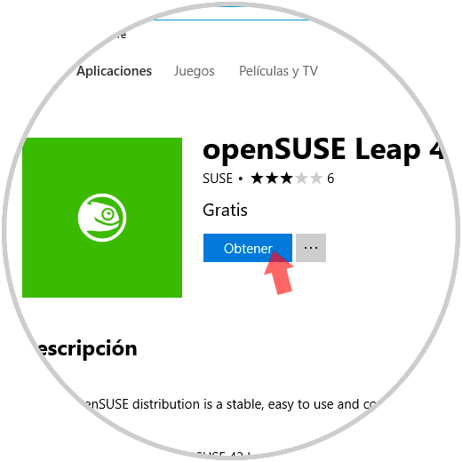 Para esta distribución, vamos de nuevo a la tienda y allí buscamos OpenSUSE y este será el resultado generado: