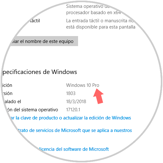 - Ir al menú “Inicio / Configuración / sistema / Acerca de” y allí tendremos la versión del sistema operativo usado: