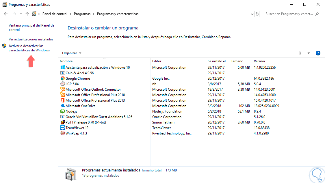 Para activar el subsistema de Linux en Windows 10 debemos ir a la siguiente ruta: