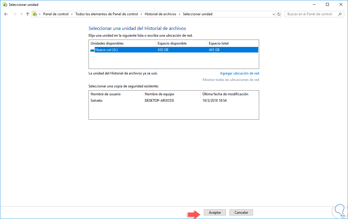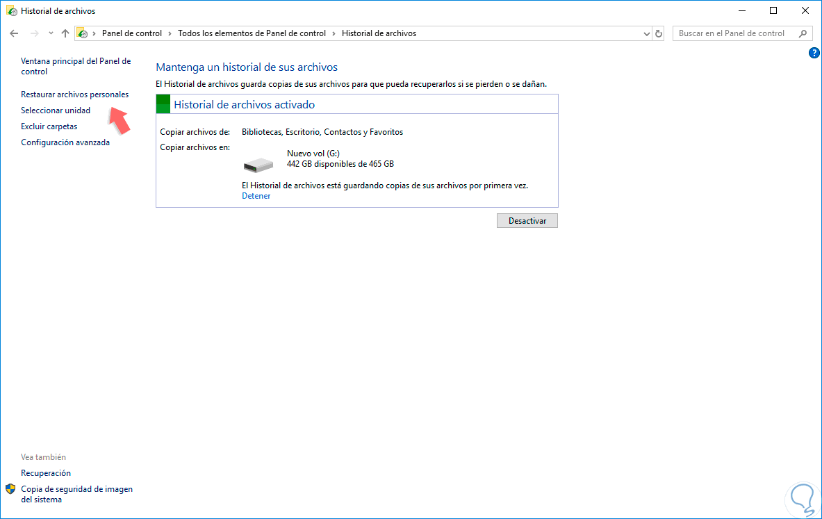 El historial de archivos crea de forma automática versiones de respaldo de los datos en una programación en la unidad, interna o externa, que hayamos seleccionado para tal fin.