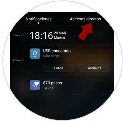 Lo primero que debemos hacer es desplazar la pantalla de nuestro teléfono hacia abajo y seleccionar en la parte superior la opción de “Accesos directos”.