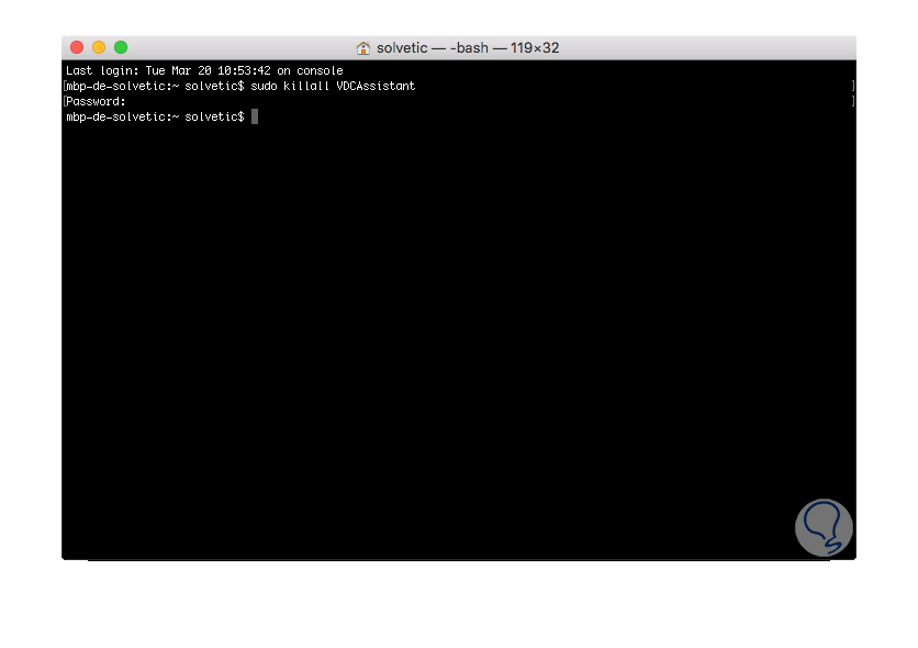Para forzar el cierre de VDCAssistant vamos a la terminal usando alguna de las siguientes opciones: