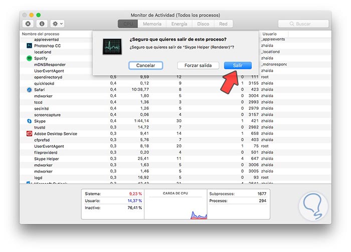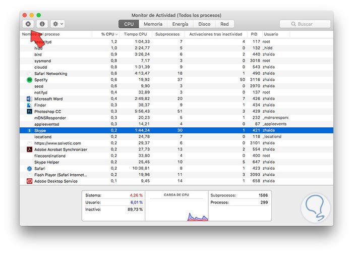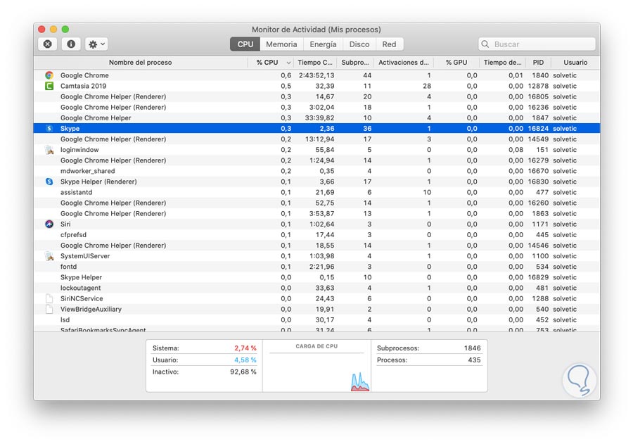 - Dirigirnos a la ruta Ir / Utilidades / Monitor de actividad