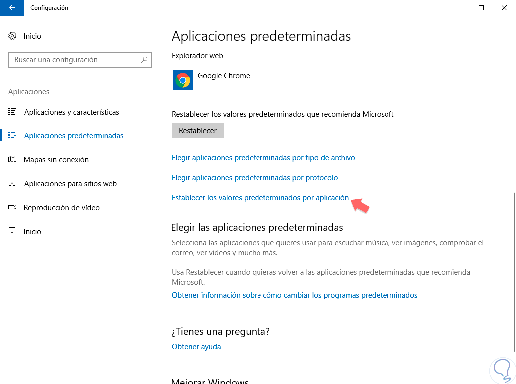 Elegimos “Aplicaciones predeterminadas” y en la parte derecha seleccionamos “Establecer valores predeterminados por aplicación”.