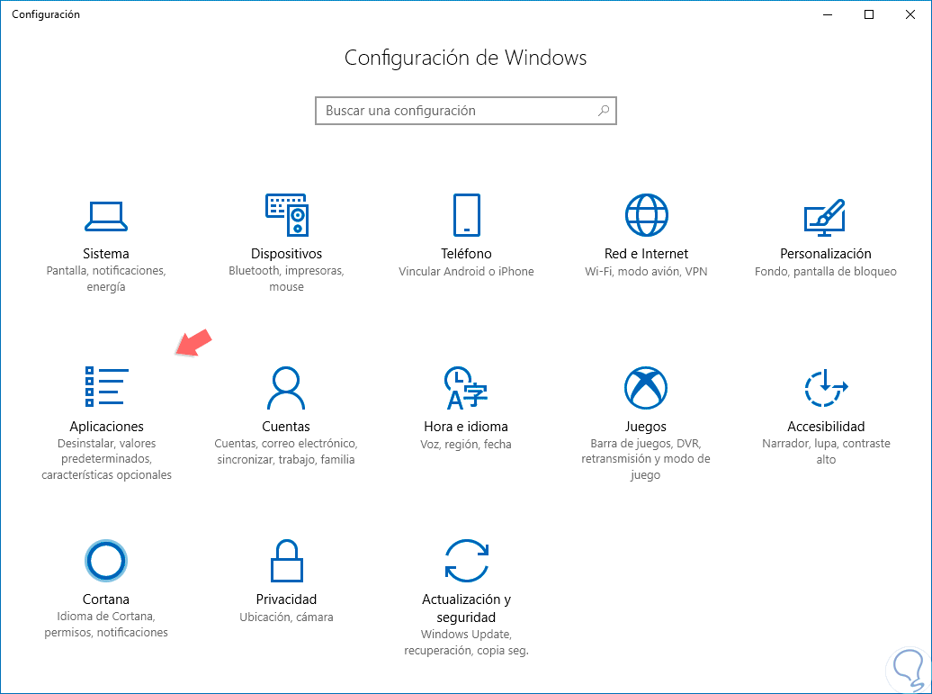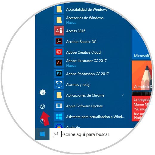 Nos dirigimos al panel de Inicio de Windows y pulsamos el botón de “Configuración”.