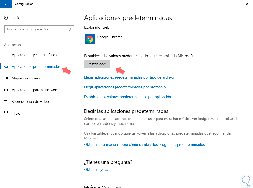 2. Restablecer el tipo de archivo asociado a una aplicación en Windows 10