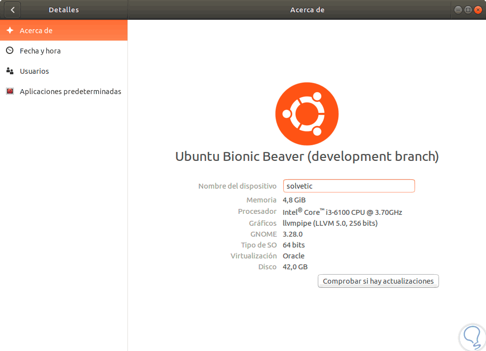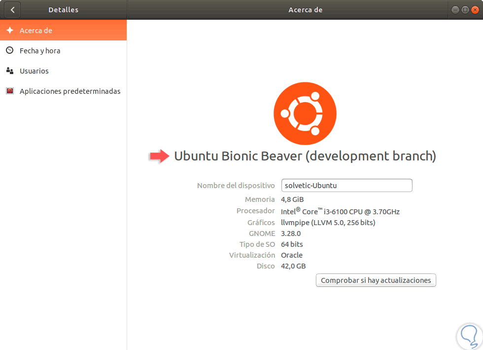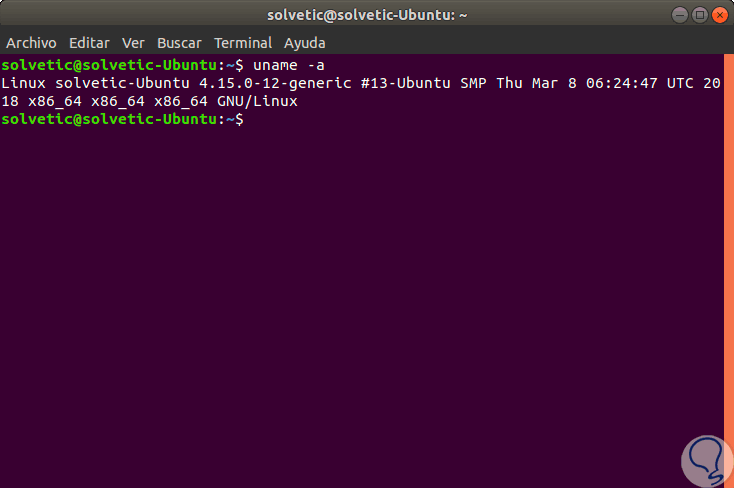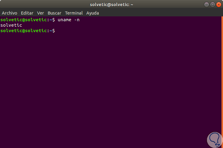 Para conocer el nombre actual del sistema Ubuntu vamos a la terminal y ejecutamos lo siguiente: