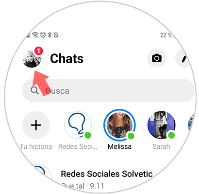 Lo primero que tienes que hacer es entrar en tu cuenta de Messenger y seleccionar el icono de tu perfil.