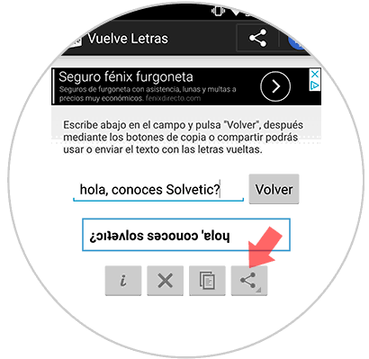 Ahora veremos que el texto que hemos escrito ha quedado al revés. Tenemos que seleccionar el icono de compartir.