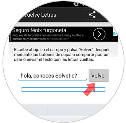 Una vez que la tenemos descargada, veremos que al abrirla aparece un recuadro donde debemos introducir el texto que queremos invertir y seleccionamos “Volver”.