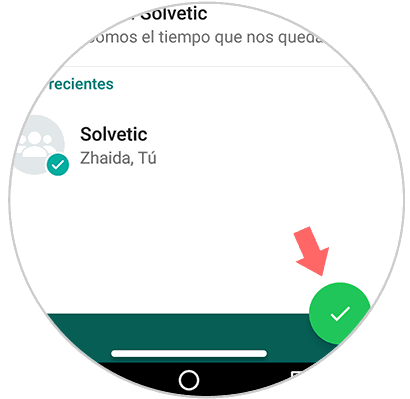 Veremos que somos redirigidos a WhatsApp. Tenemos que seleccionar el contacto o grupo al que queremos mandar el mensaje.