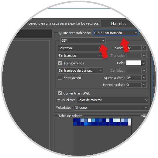 Para crear nuestro GIF seleccionamos la categoría de “Ajuste preestablecido” y elegimos el formato GIF. También elegir un preset determinado.