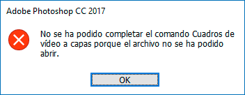 Antes de empezar a trabajar el vídeo con Photoshop es posible que tengamos que convertir nuestro vídeo para que sea compatible. Y aparezcan mensajes como este:
