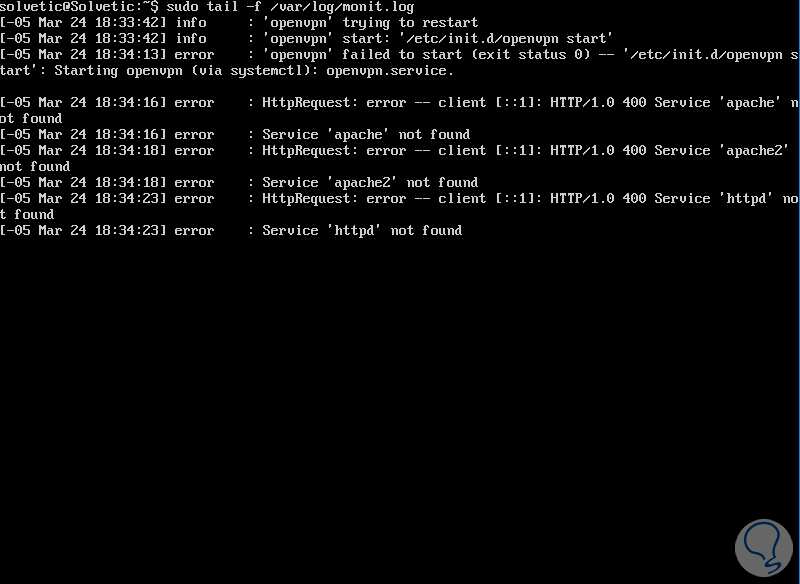 En el momento en que deseemos acceder a los logs de Monit, basta con ejecutar la siguiente línea: