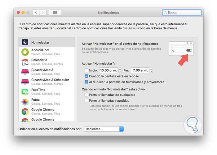 De esta forma, configuramos No molestar de forma general en macOS High Sierra.