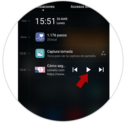 Ahora podemos salir de la aplicación de YouTube, y veremos que en la parte de las notificaciones ha quedado el reproductor en espera. Tenemos que darle al “Play” y la músico o el audio comenzará a escucharse.