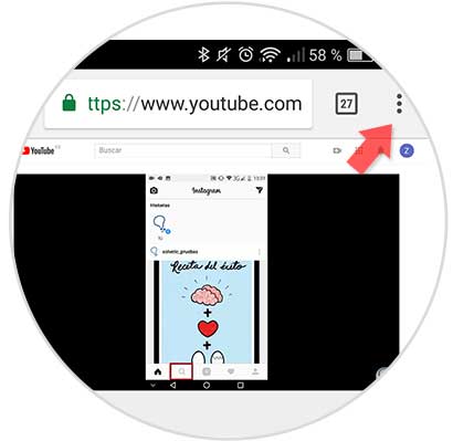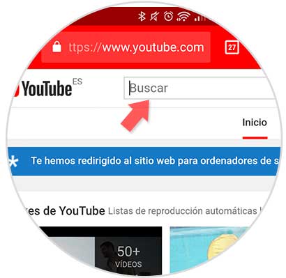 Lo primero que debemos hacer es entrar en YouTube desde el navegador web de nuestro teléfono móvil.