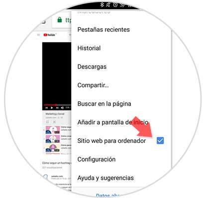 Ahora tenemos que desplegar el menú lateral derecho, y seleccionar que queremos activar “Sitio web para ordenador”.