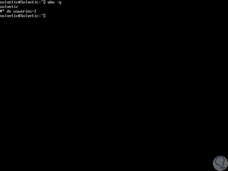 Para imprimir en pantalla los nombres de inicio de sesión y la cantidad total de usuarios conectados, basta con usar el parámetro -q así: