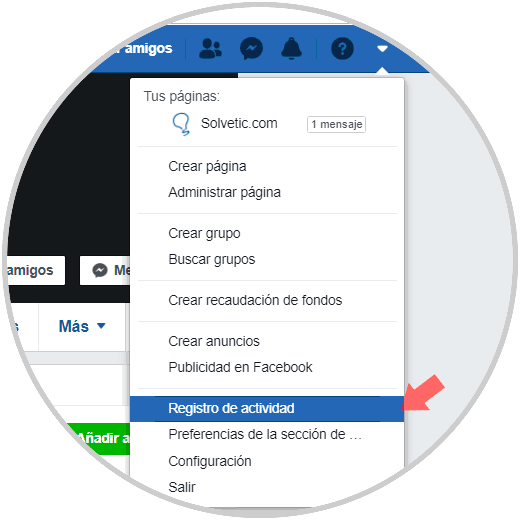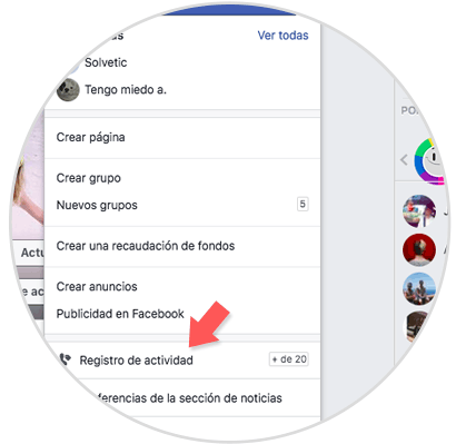 Una vez lo hagas, se va a desplegar una ventana con varias opciones, pulsa en "Registro de actividad".