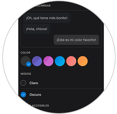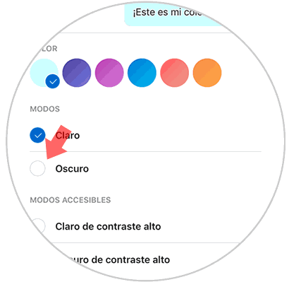 En el apartado de modos, veremos que tenemos la posibilidad de seleccionar "oscuro". Pulsamos sobre esta opción.