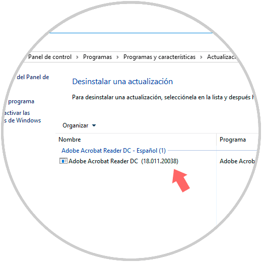 En algunos casos las actualizaciones asociadas a Windows Defender pueden causar cierto conflicto generando el error en mención, para comprobar esto daremos clic en la línea “Desinstalar las actualizaciones” donde será desplegada la siguiente ventana donde ubicaremos las actualizaciones de Windows Defender, si las hay, y luego proceder a su actualización nuevamente: