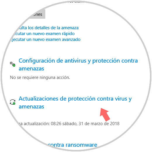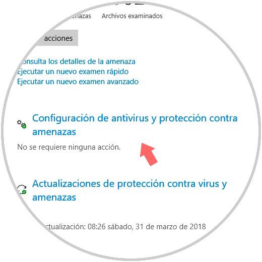 Una vez realizado esto, abrimos el Centro de seguridad de Windows Defender y vamos a la sección “Protección contra virus y amenazas”: