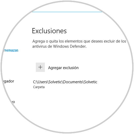 Luego, vamos a la ruta donde se encuentra el elemento en cuestión y veremos que será excluido del análisis de Windows Defender: