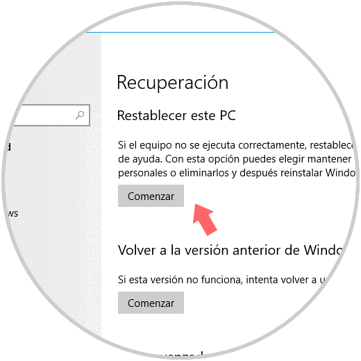 Una opción que debe tenerse en cuenta en caso d que ninguna otra nos dé una solución integra, es restablecer el equipo a su estado original con el fin de cargar de nuevo toda la configuración de Windows Defender.