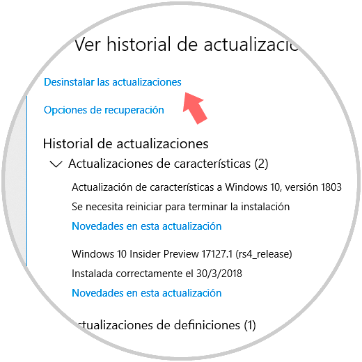 Allí podremos pulsar en la línea “Ver historial de actualizaciones” y veremos lo siguiente: