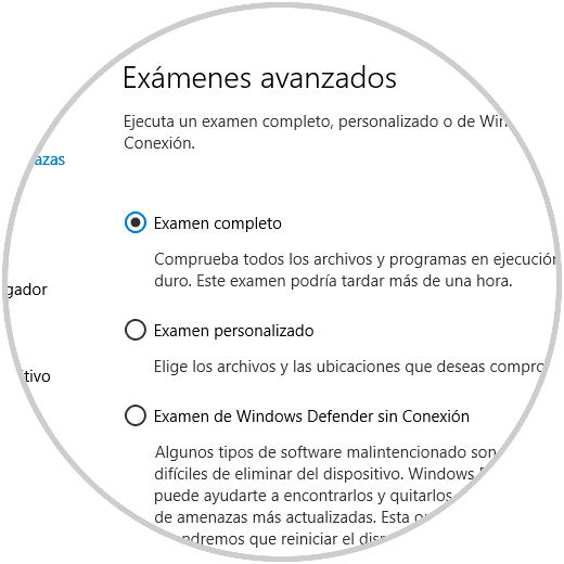 Es altamente recomendable contar con software antivirus o bien usar la utilidad del Centro de seguridad de Windows Defender la cual cuenta con novedosas funcionalidades pensadas en mejorar la seguridad general del sistema. Para ello, iremos al Centro de seguridad de Windows Defender y en la sección de Protección antivirus y contra amenazas ejecutamos un análisis completo del sistema para descartar la presencia de cualquier amenaza allí: