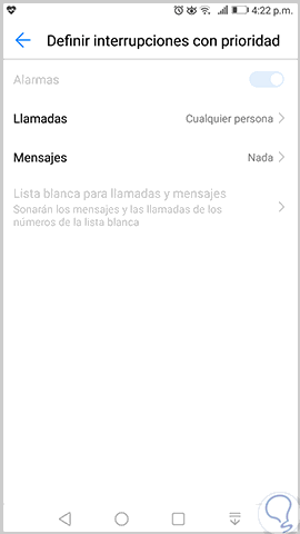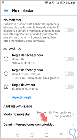 Para definir que notificaciones serán recibidas, pulsamos en la sección “Definir interrupciones con prioridad” y será desplegado lo siguiente: