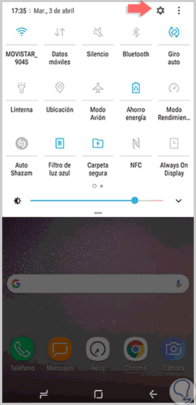 Nos vamos al menú de “Ajustes” desplazando el panel de notificaciones hacia abajo.