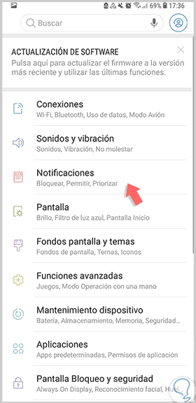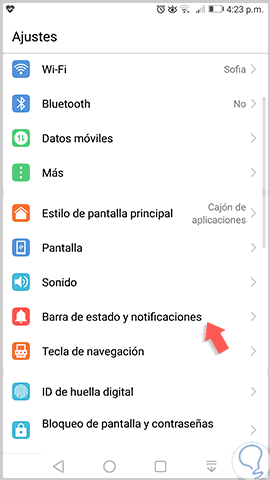 Para los usuarios de Android 7.0, se ha creado una sección especial para la gestión de las notificaciones, para ello vamos a “Ajustes / Barra de estado y notificaciones”: