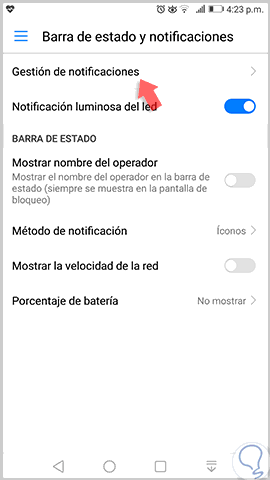 Pulsamos sobre la opción “Gestión de notificaciones” donde accederemos al listado completo de aplicaciones que generan notificaciones en Android: