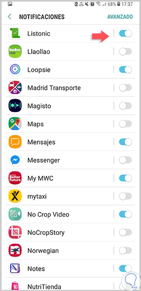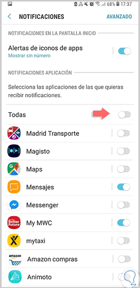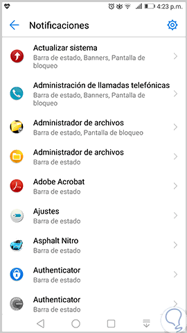 Dentro de aquí podremos seleccionar las aplicaciones de las que queremos recibir notificaciones y de cuáles no.