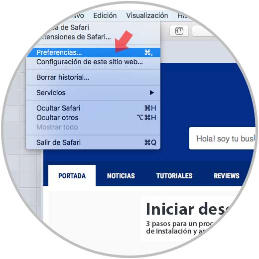 Para ello, abrimos Safari y nos dirigimos al menú Safari y allí seleccionamos Preferencias: