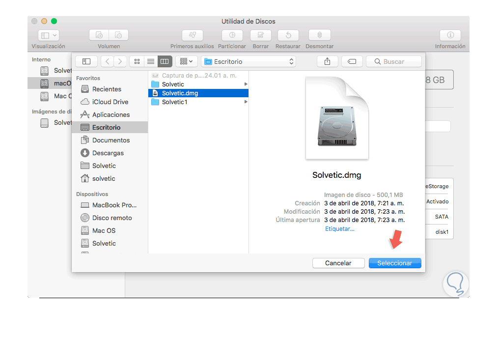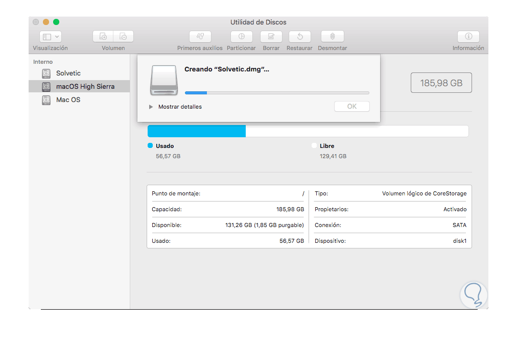 - Ingresar el término discos en Spotlight y allí seleccionar la respectiva utilidad.