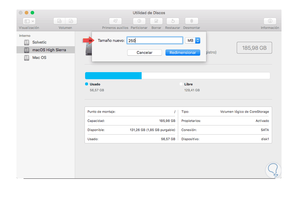 2. Modificar el tamaño de la imagen en macOS High Sierra