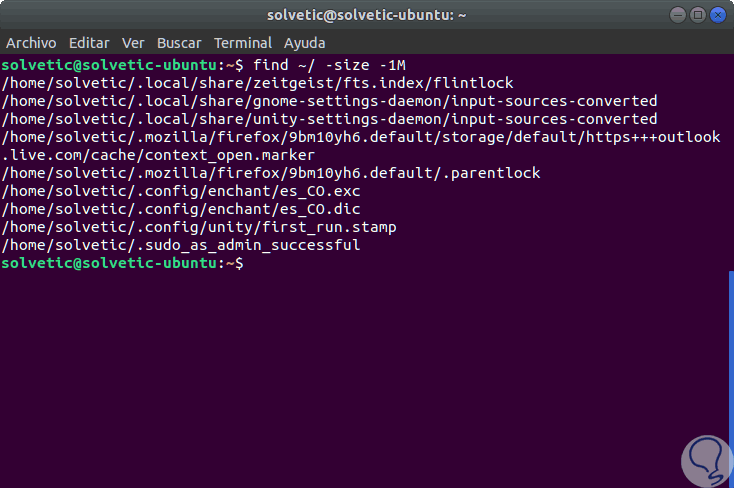 El comando find nos permite buscar un archivo en base a su tamaño, así, si deseamos buscar todos los archivos que pesan menos de 1 MB basta con ejecutar lo siguiente:
