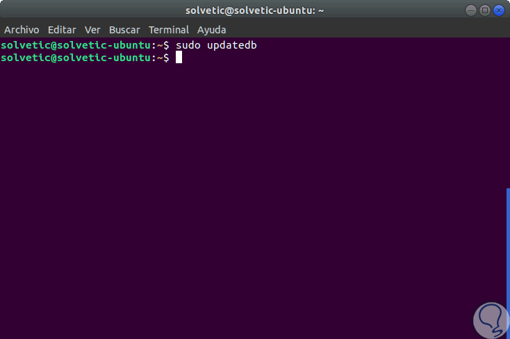 Una vez instalado locate en el sistema, vamos a ejecutar el siguiente comando para actualizar la base de datos: