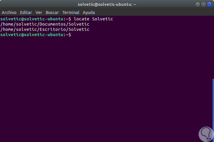 Para iniciar a usar locate, vamos a ir a la terminal y ejecutar locate seguido del nombre de archivo que estamos buscando así: